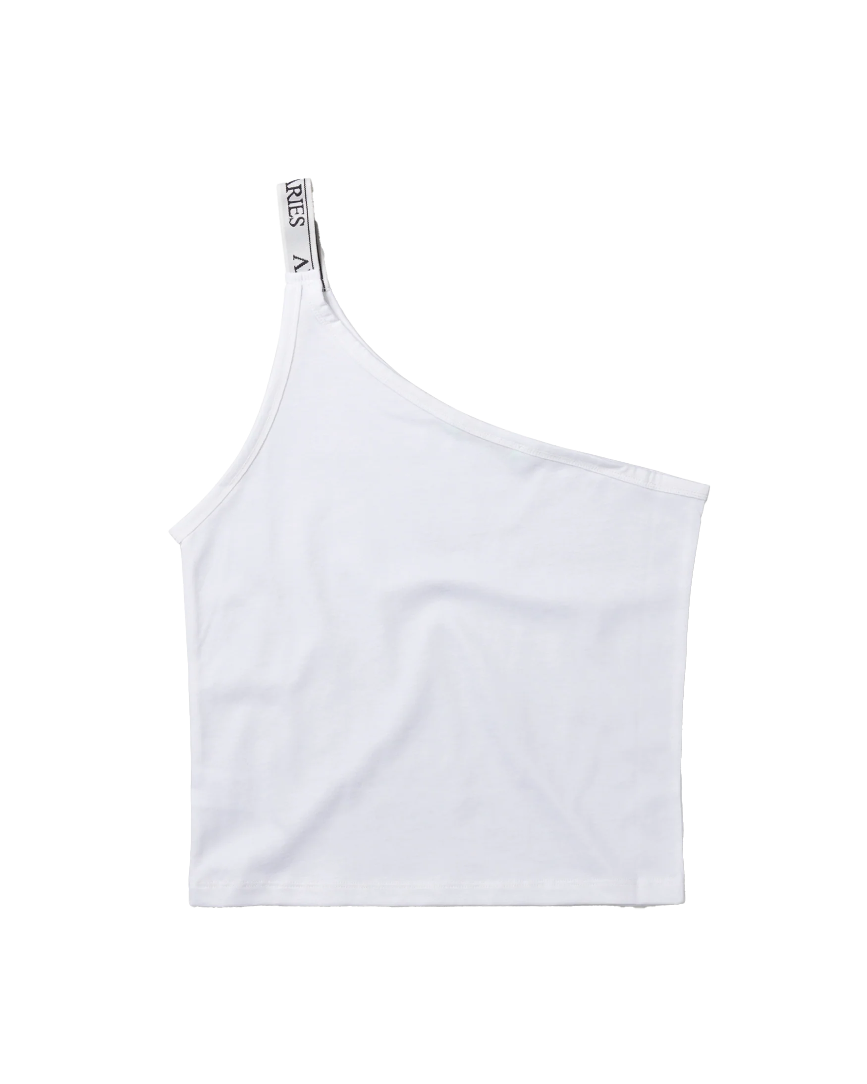 One-shoulder vest top in a soft mercerised cotton jersey. Slightly cropped, with a branded elastic shoulder strap. 100% cotton.