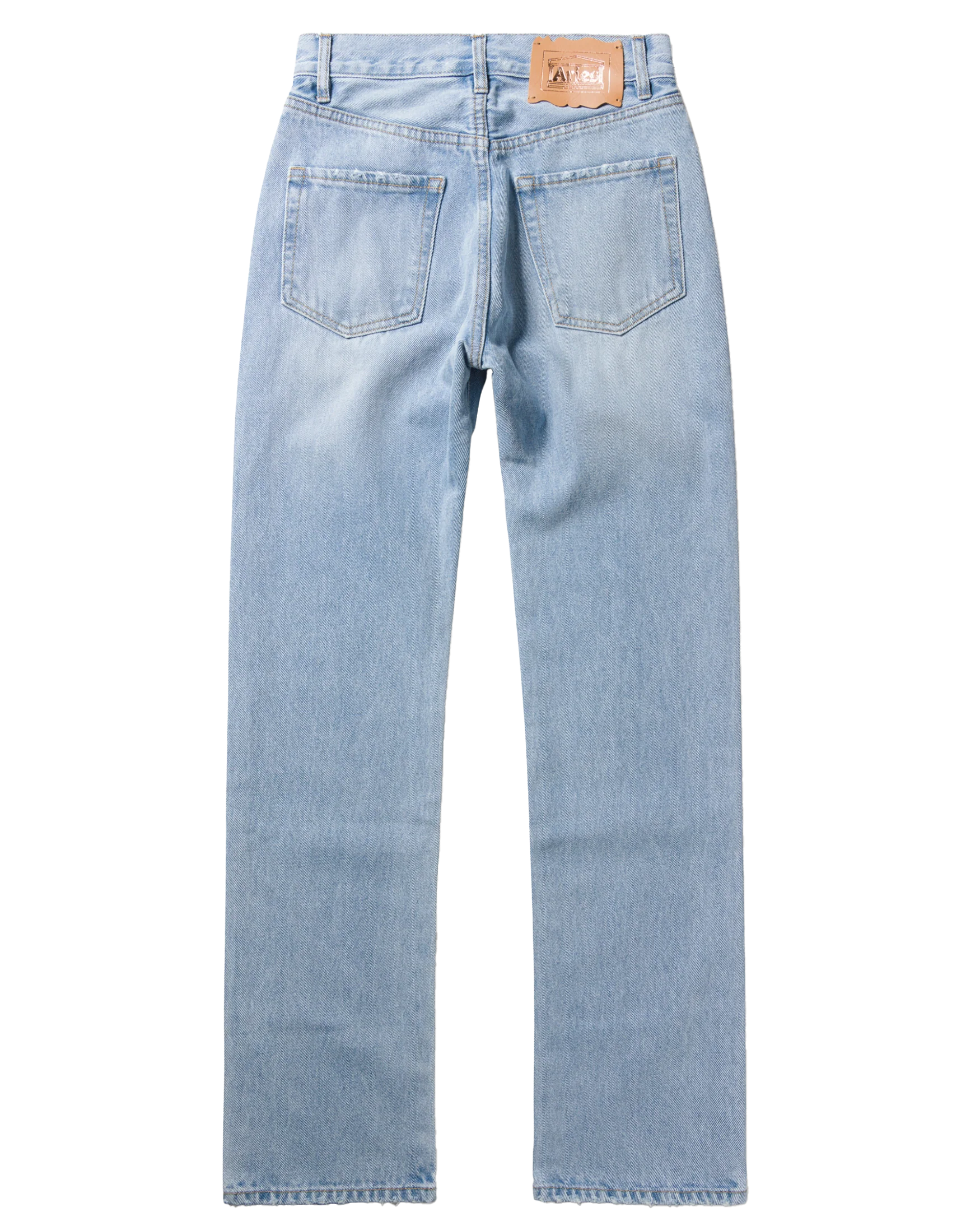 Unisex Lilly jean, made from premium indigo denim, treated with a vintage-style pale wash. Our favourite unisex classic-cut jeans that look great tight-fitting or baggy. True straight leg with a high rise and button fly. Sized to conventional men’s sizing.
