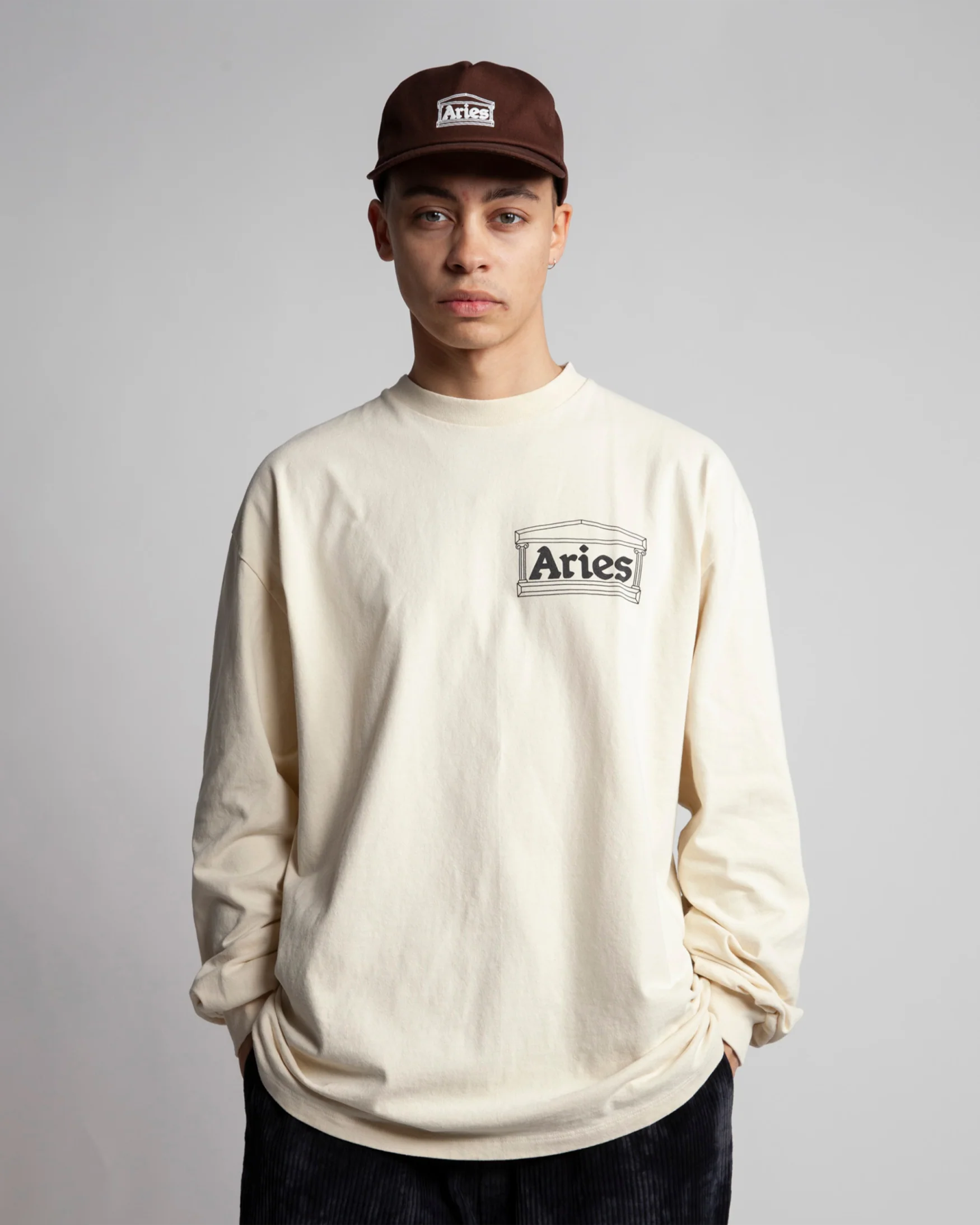 Unisex long sleeve t-shirt made from premium heavy-weight jersey. With a screen-printed Aries Temple logo on the chest. 100% cotton.