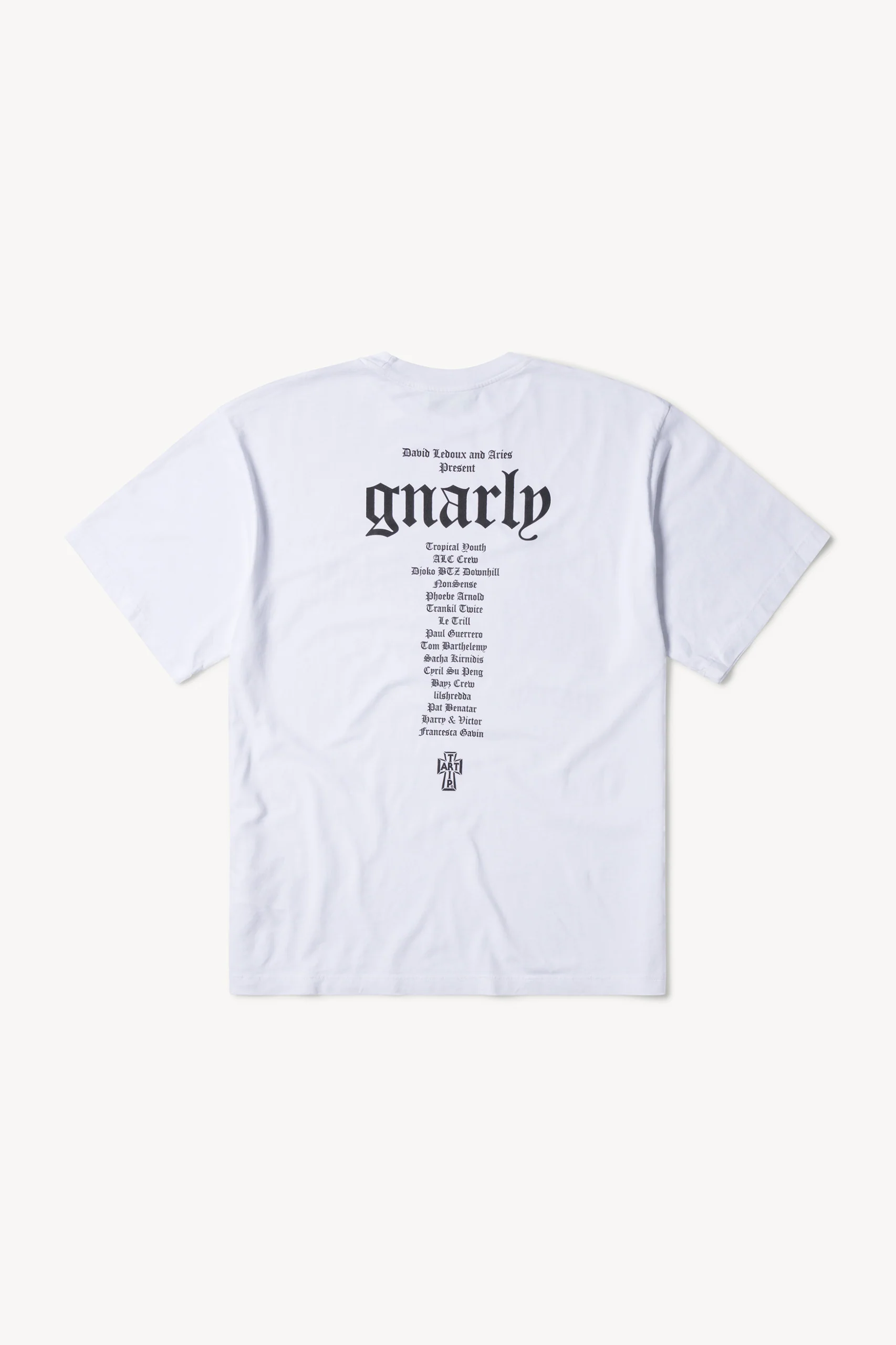 Aries Temple SS Tee with over printed black and white photographic David Ledoux images on the front and back credits print.